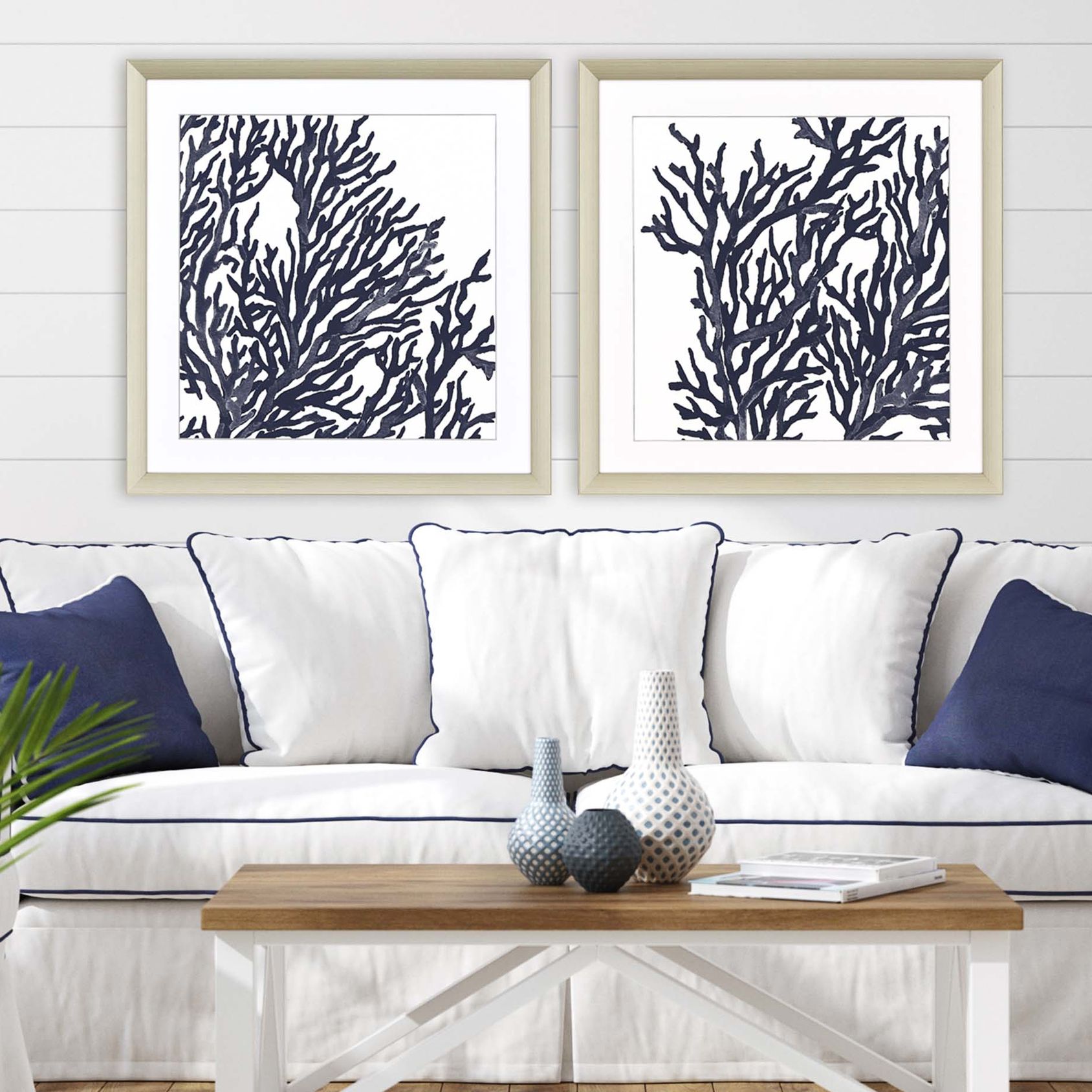 Blue Coral I 32" Square 2-Piece Framed Giclee Wall Art Set