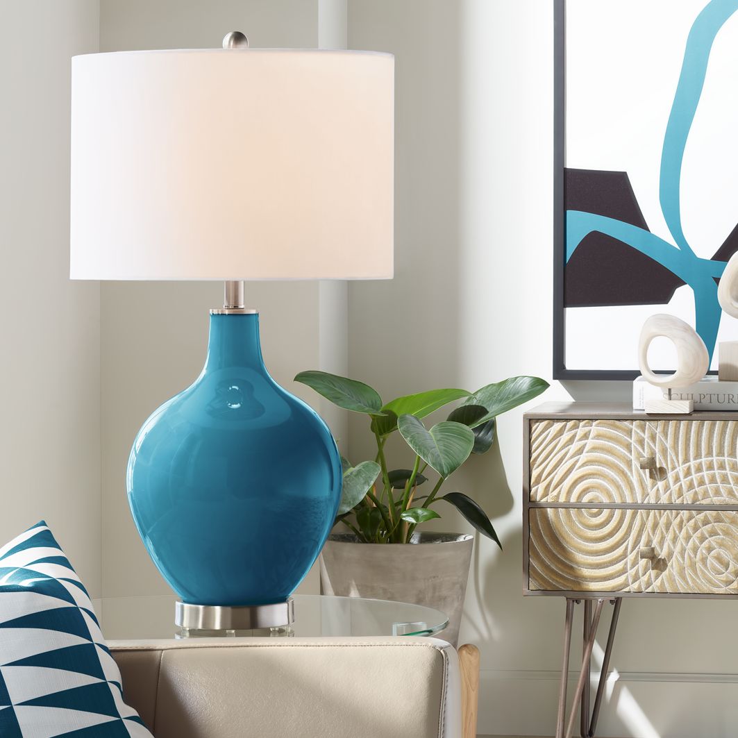 Color Plus Ovo 28 1/2" Modern Glass Oceanside Blue Table Lamp