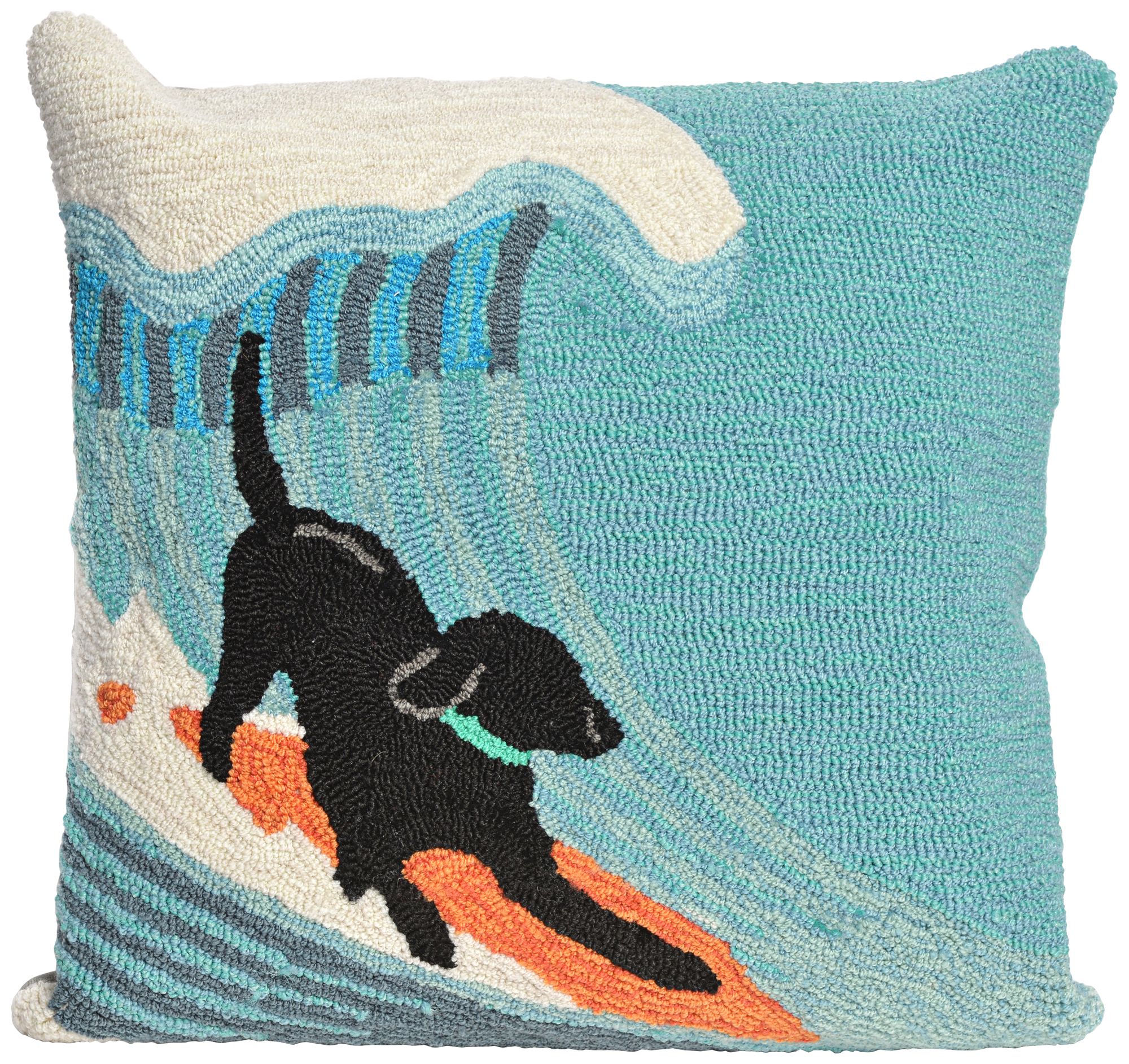 Frontporch Surfing Dog Ocean 18" Indoor-Outdoor Pillow