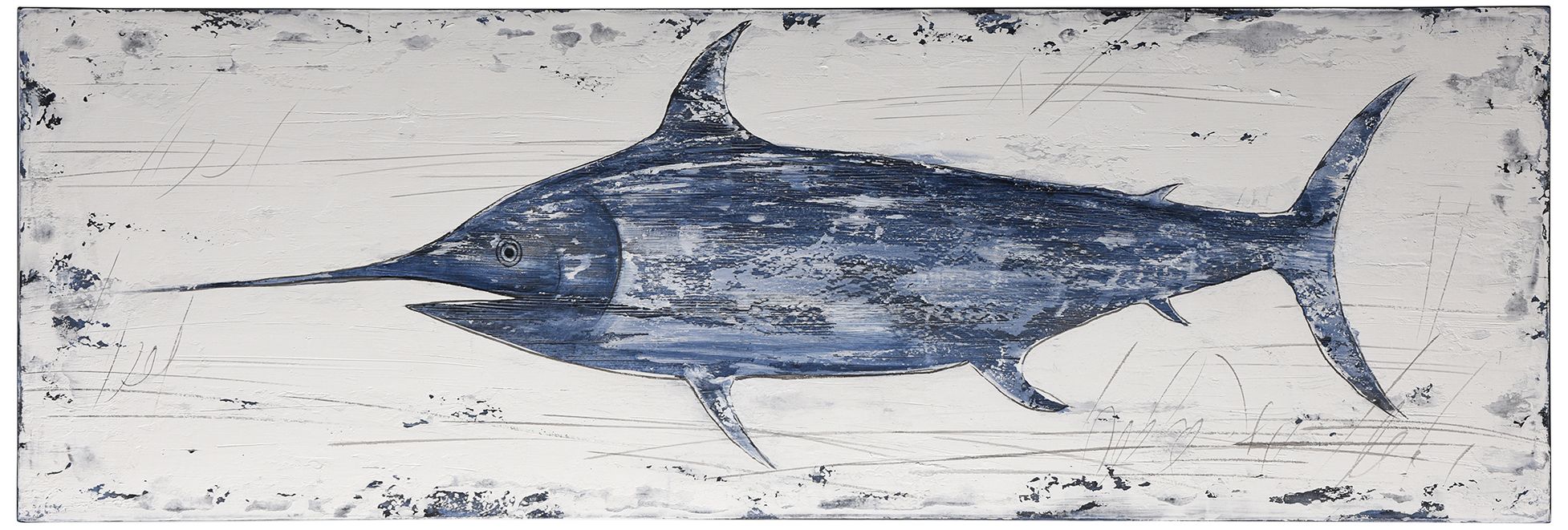 Anglo Rustic Swordfish 59" Wide Blue Canvas Wall Art