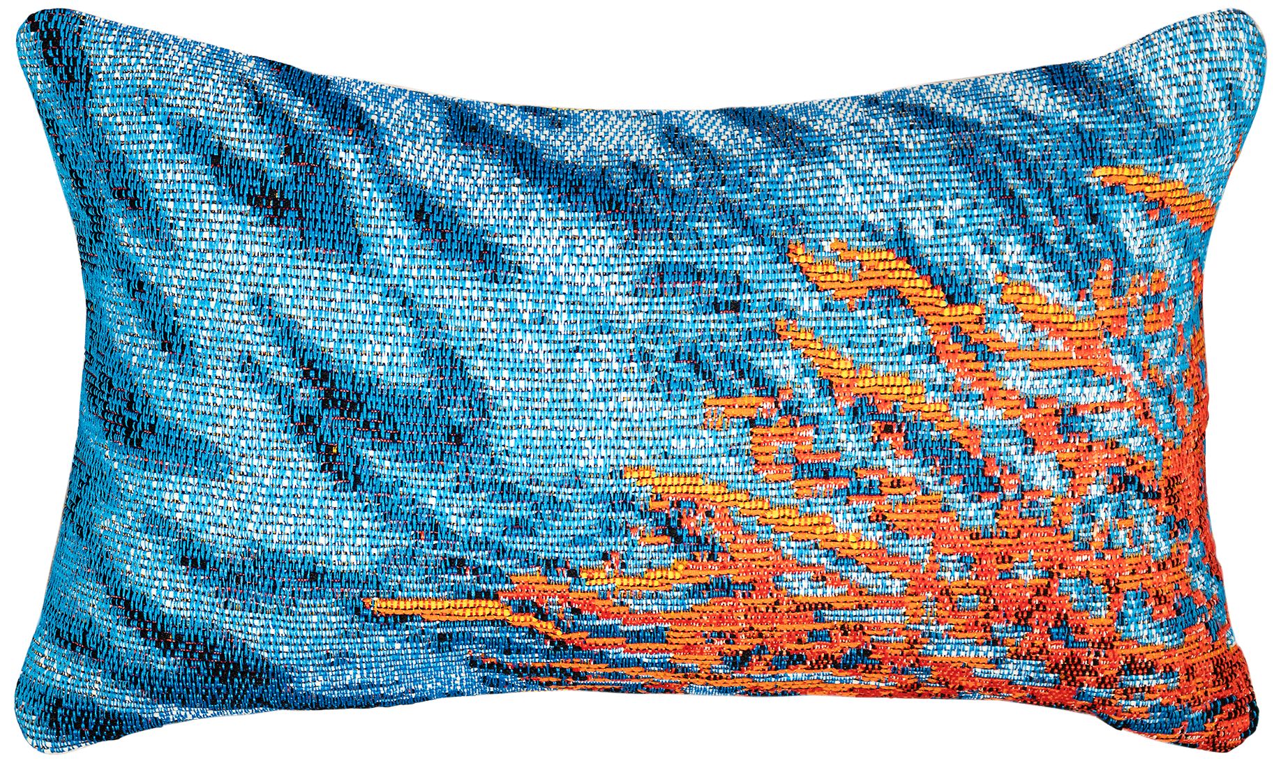 Marina Blue and Orange Coral 18" x 12" Indoor-Outdoor Pillow