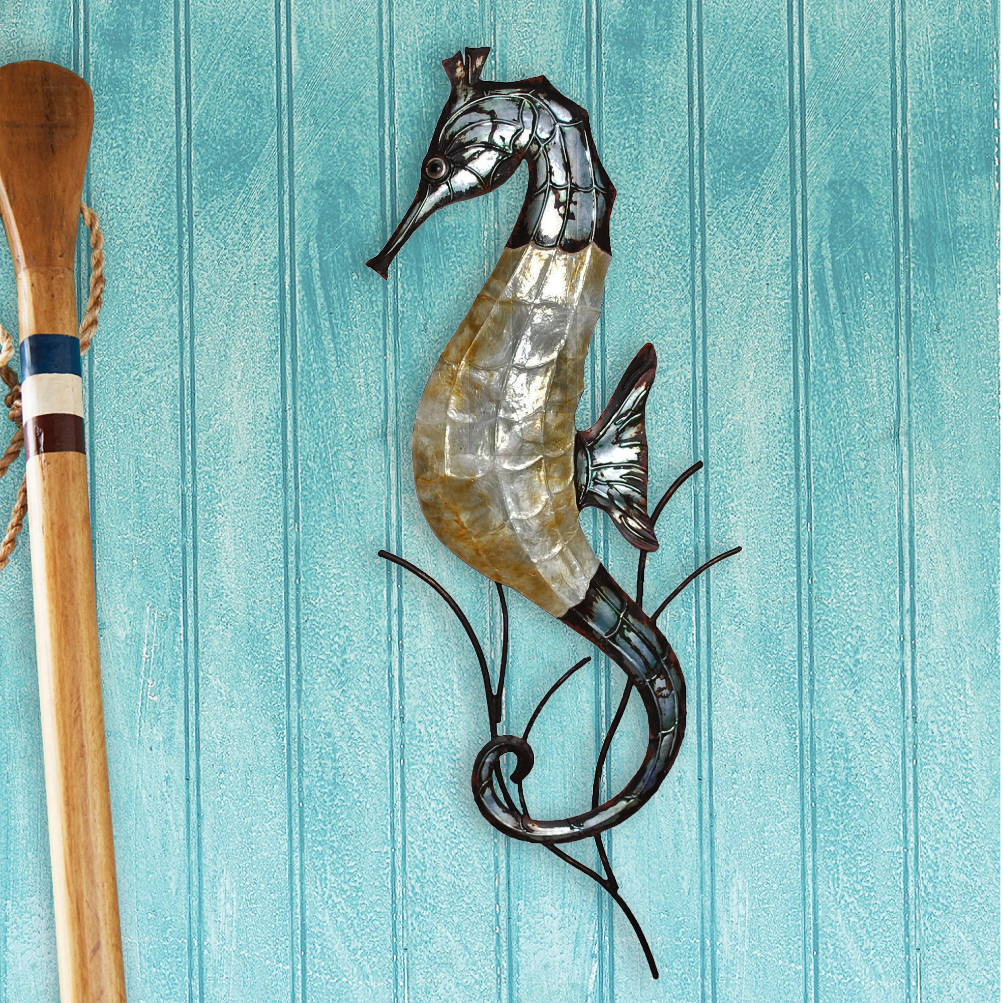Eangee Seahorse 22"H Gray and Pearl Capiz Shell Wall Decor