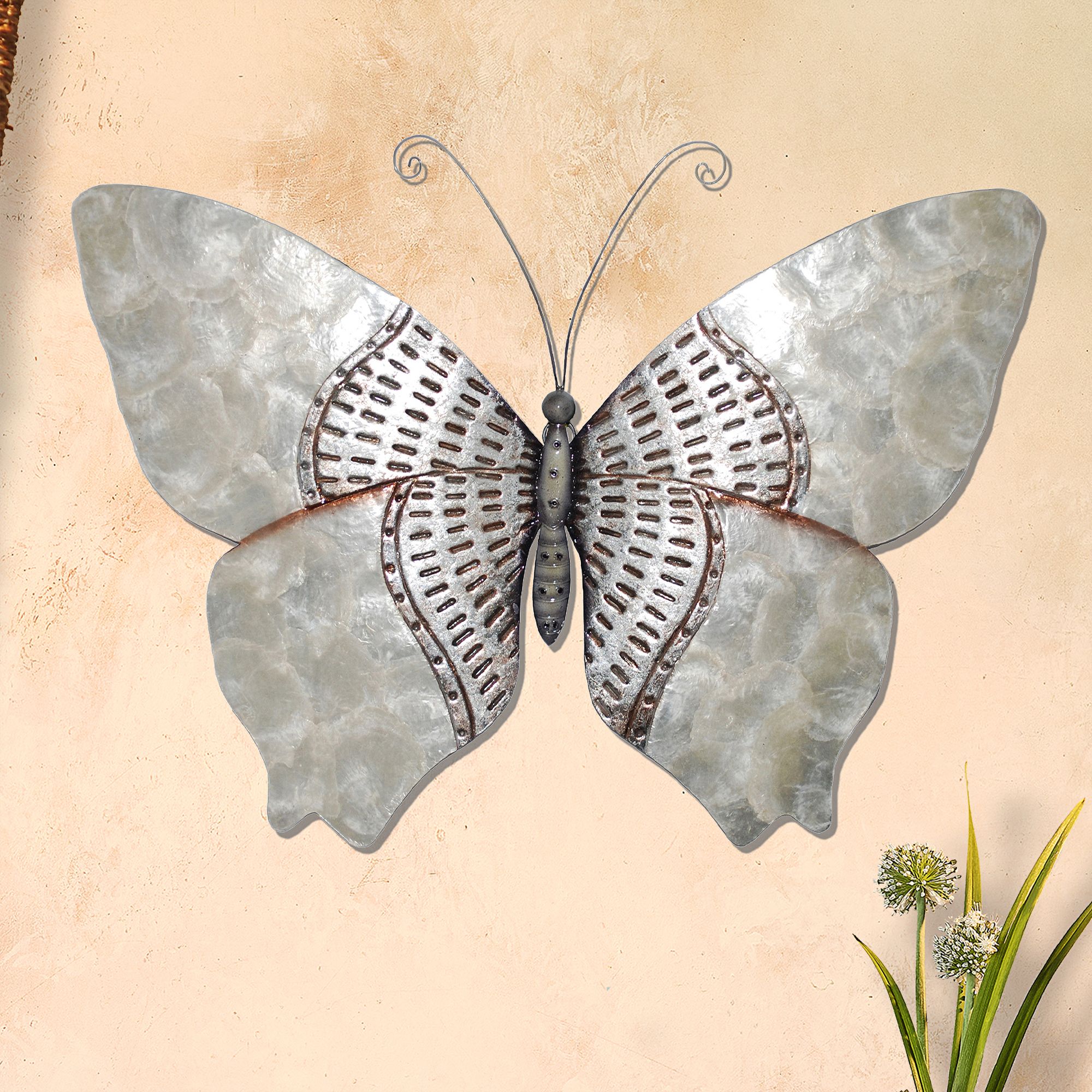 Silver with Rust Dashes Butterfly 18" Wide Wall Decor