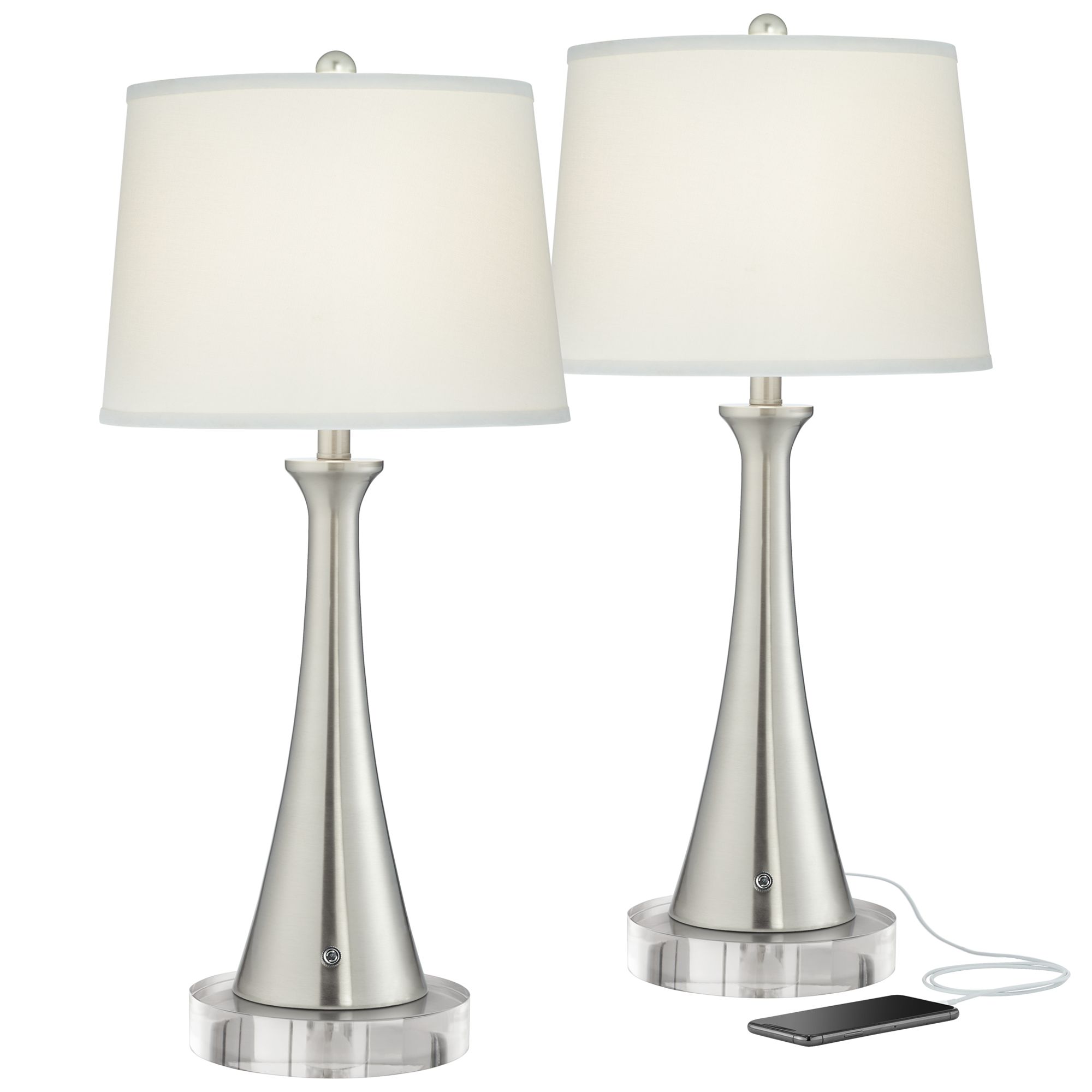 360 Lighting Karl 23 1/2" Modern Nickel USB Lamps with Acrylic Risers