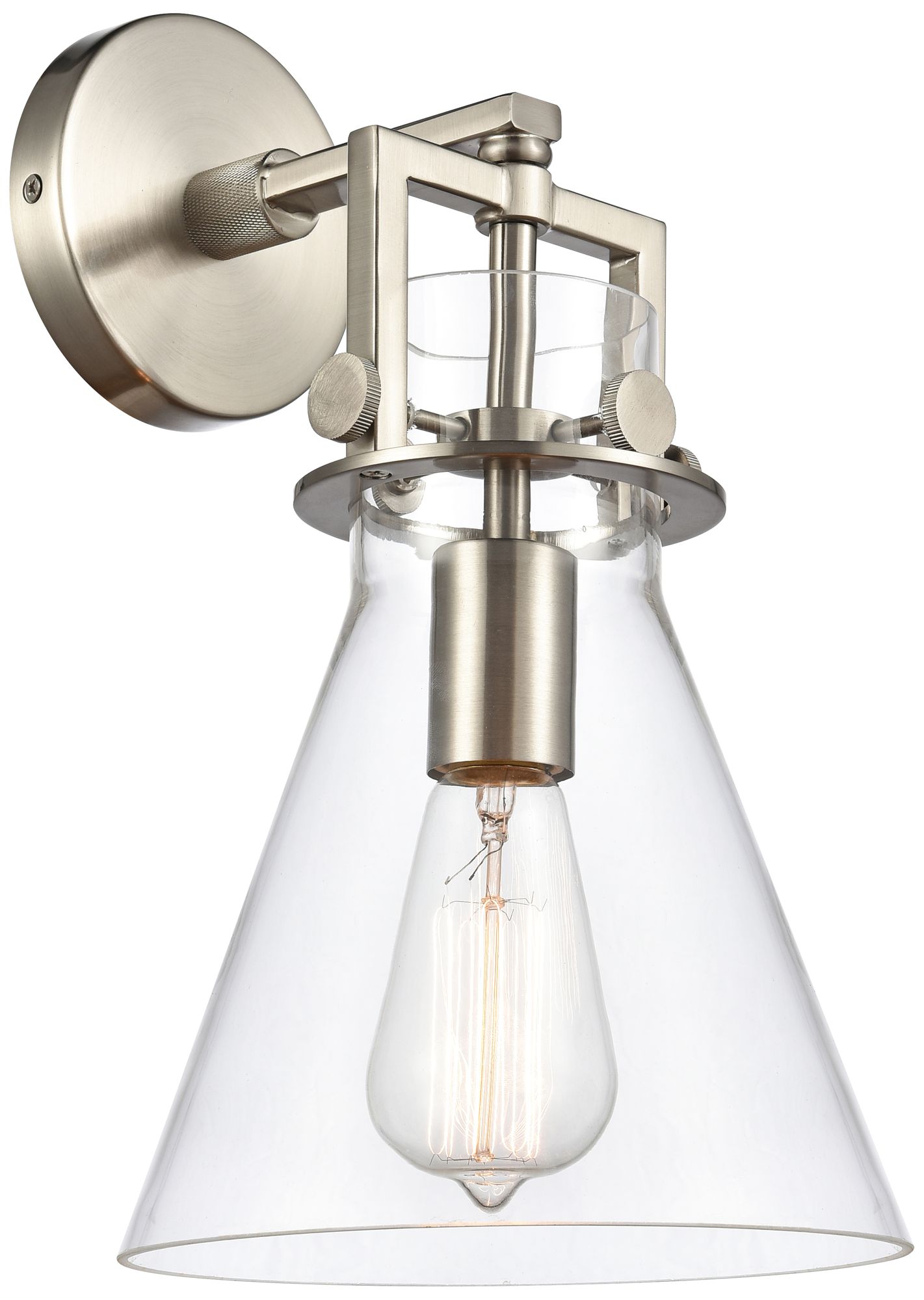 Newton 14"H Satin Nickel Truncated Cone Glass Wall Sconce