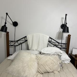 Brighten a bedroom or seating area with these plug-in wall lamps. They come in a handsome black finish and have a modern industrial look. The shade directs light downwards, making it perfect for task lighting. They can be adjusted up and down at the lamp head and arm joint, and left and right from the adjustment point on the backplate. Easy installation, just mount to wall and plug in.