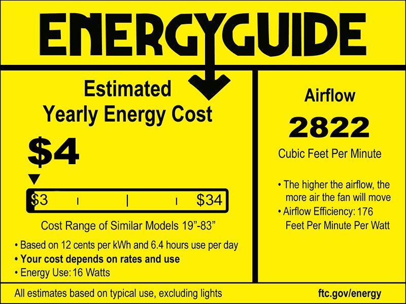 | Airflow | 2822 (Avg CFM) / 4227 (High CFM) |