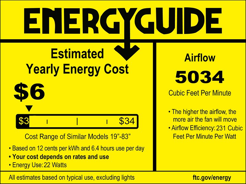 | Airflow | 5034 (Avg CFM) / 7284 (High CFM) |