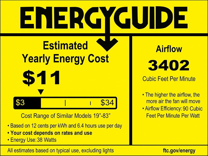 | Airflow | 3402 (Avg. CFM) / 5192 (High CFM) |