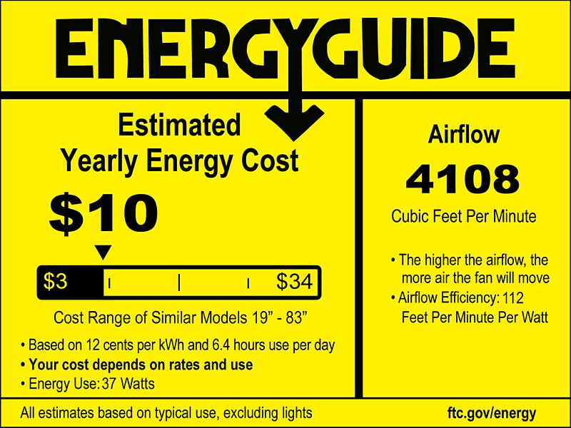 | Airflow | 4108 (Avg CFM) / 5389 (Hgh CFM) |