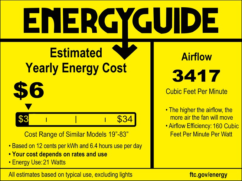 | Airflow | 3417 (Avg CFM) / 5326(High CFM) |