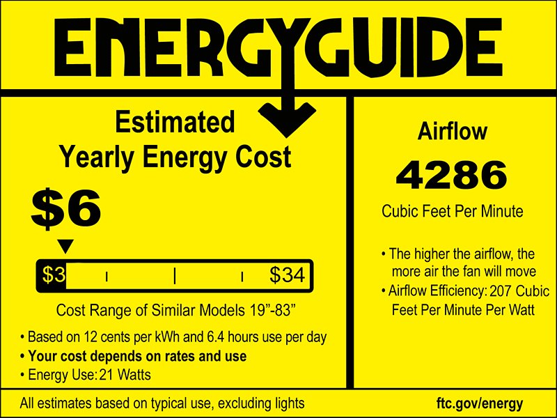| Airflow | 4286 (Avg. CFM) / 6270 (High CFM) |