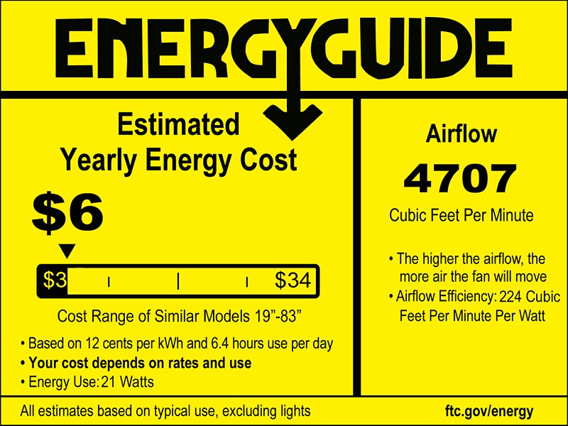| Airflow | 4707 (Avg. CFM) / 6928 (High CFM) |