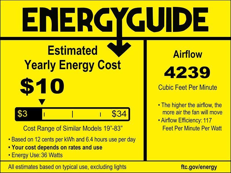 | Airflow | 4239 (Avg CFM) / 5901 (High CFM) |