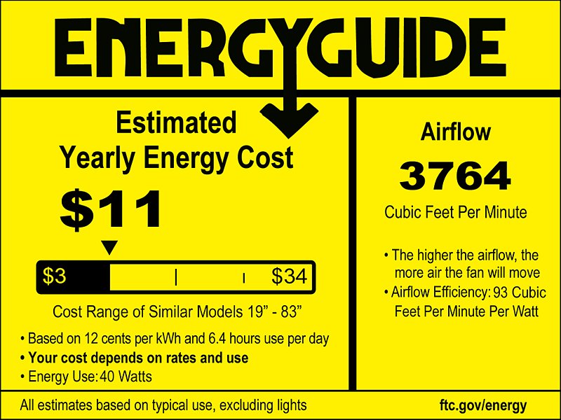 | Airflow | 3764 (Avg CFM) / 5204 (High CFM) |