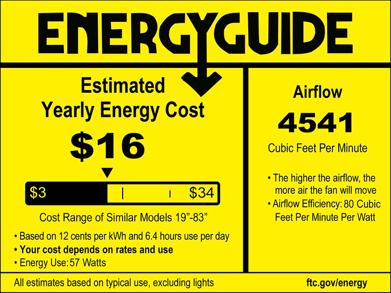 | Airflow | 4541 (Avg. Test Result) / 6025 CFM (High Test Result) |