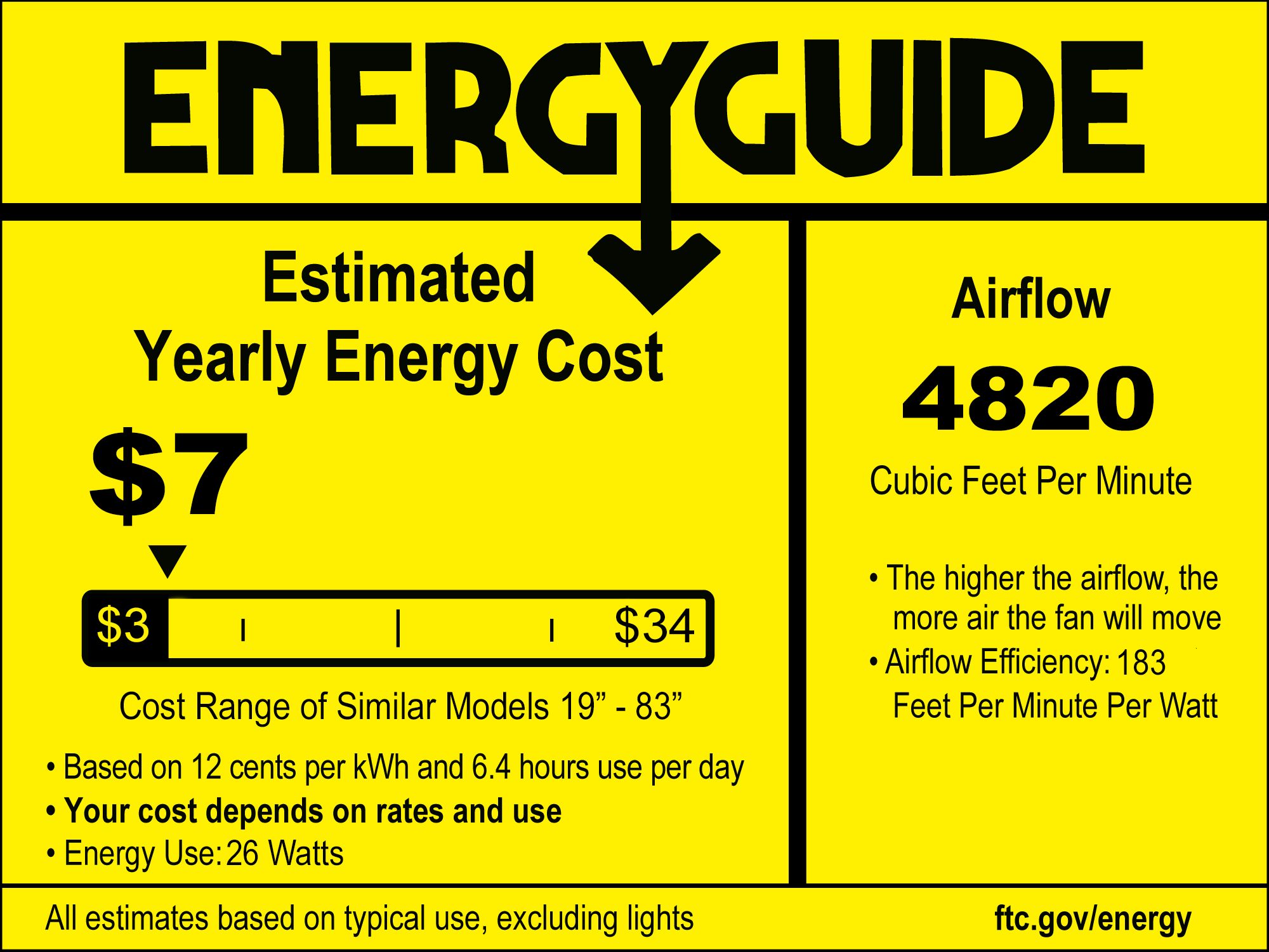 | Airflow | 4820 (Avg CFM) / 6076 (High CFM) |