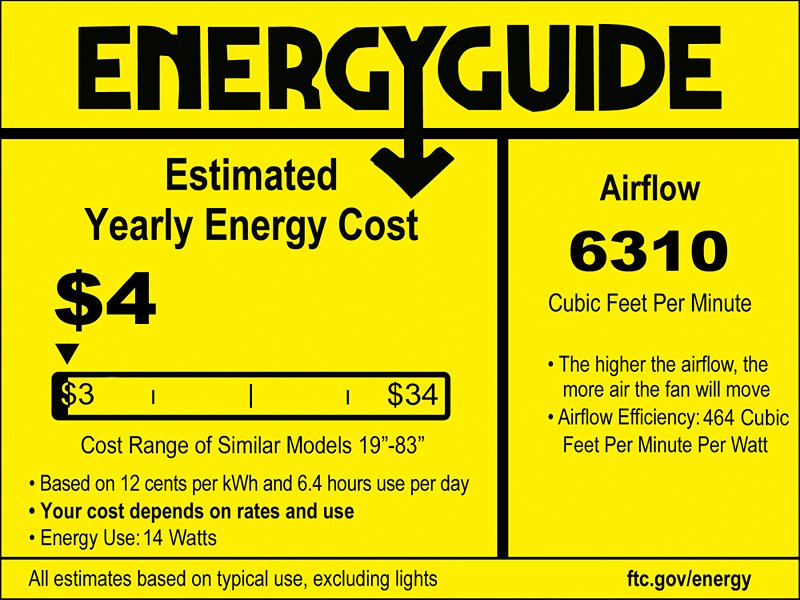 | Airflow | 6310 (Avg CFM) / 8487 (High CFM) |