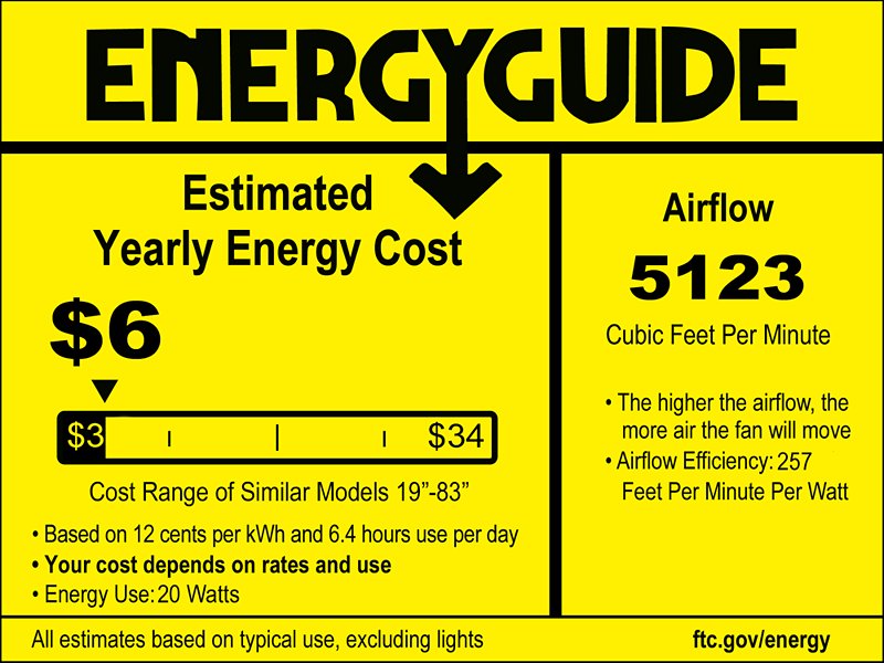 | Airflow | 5123 (Avg CFM) / 7053 (High CFM) |