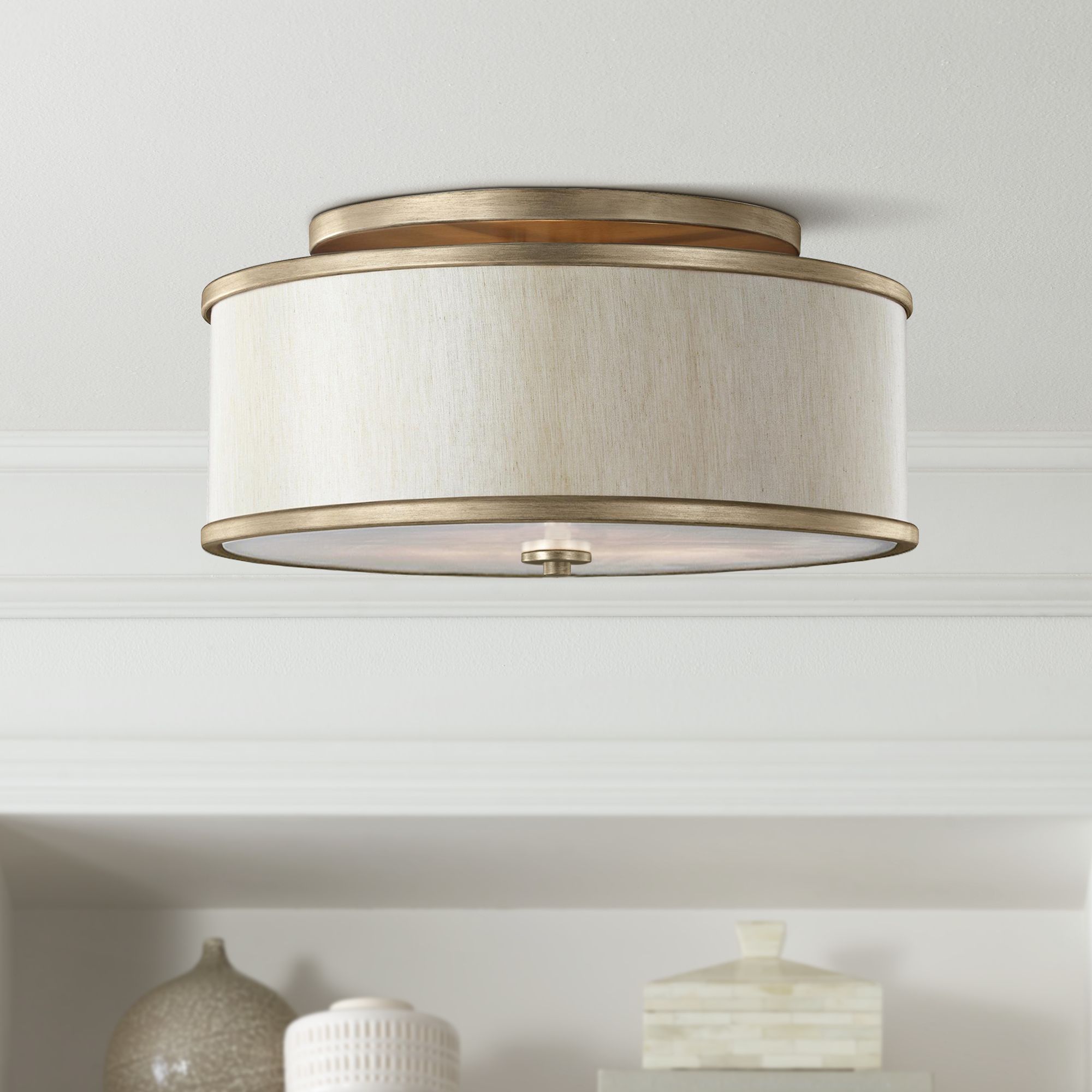 Generation Lighting Lennon 20" Gold and Cream Linen Drum Ceiling Light