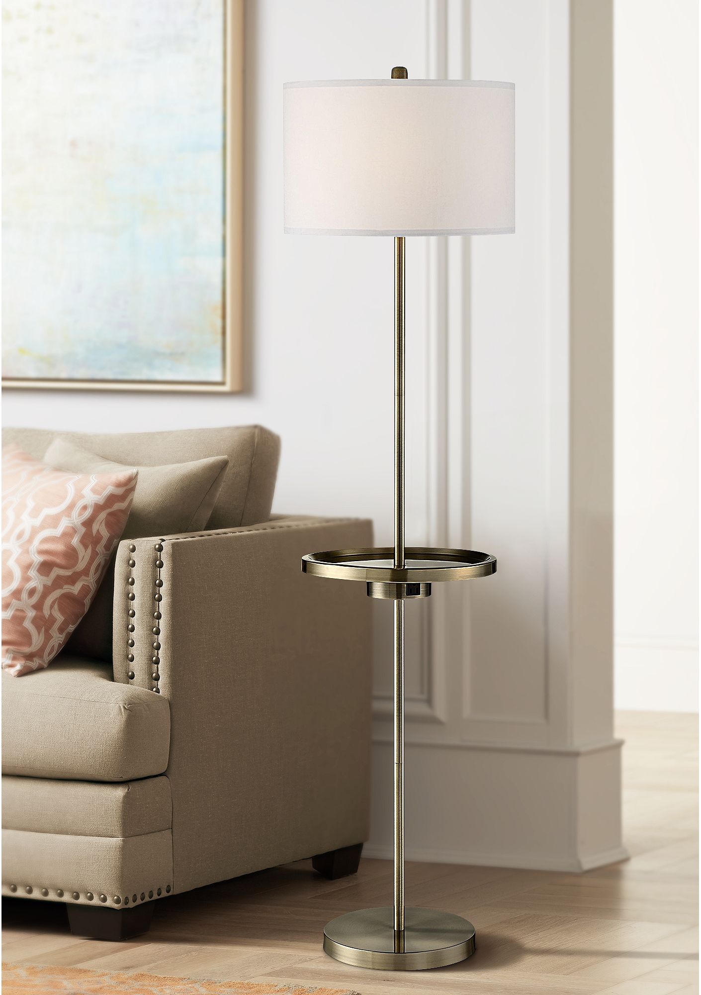 Lite Source Brass 62" Outlet and USB Floor Lamp with Tray Table