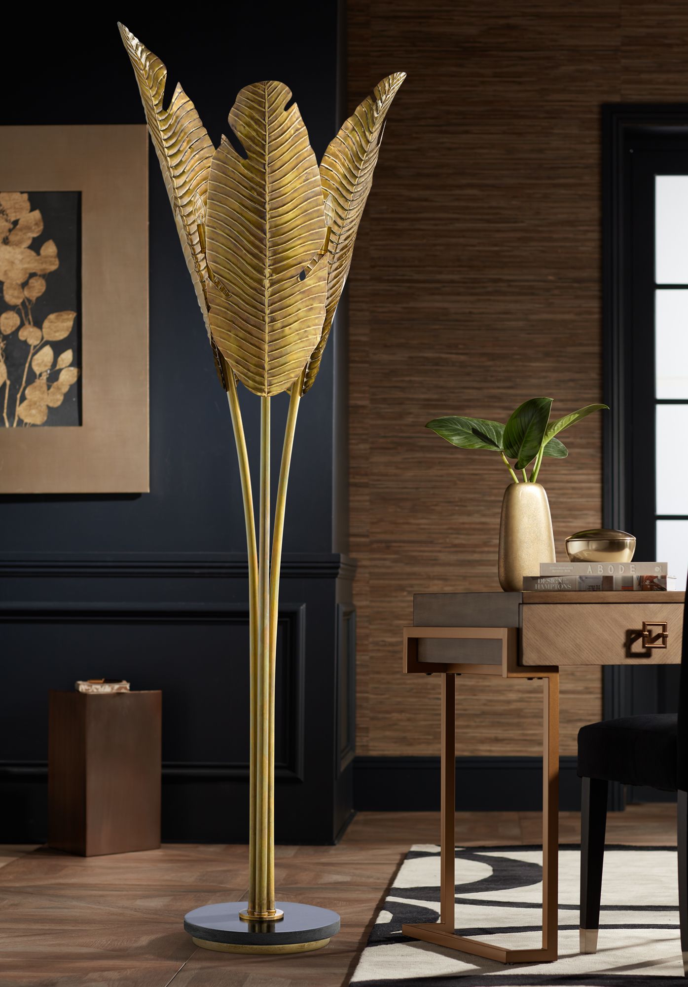 Currey & Company Tropical Vintage Brass Metal Floor Lamp