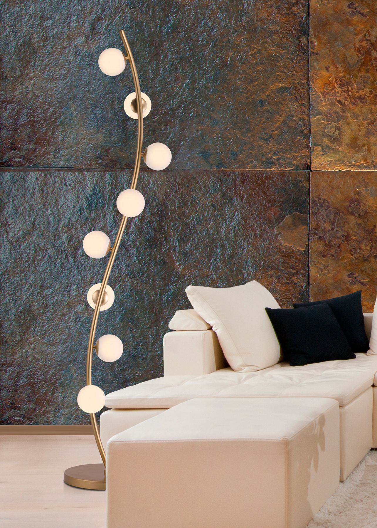 Adesso Doppler 65" Antique Brass Modern LED Tree Floor Lamp