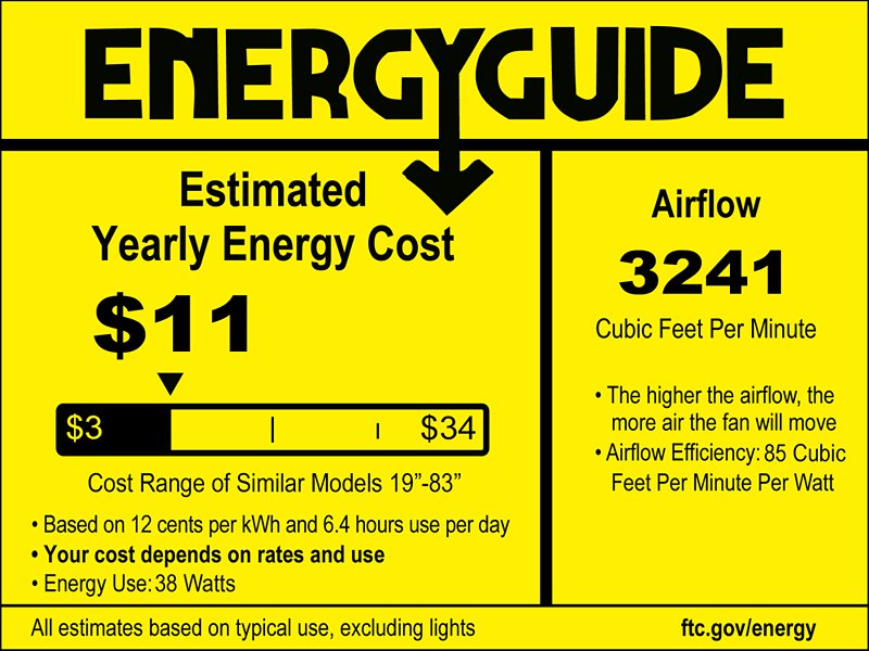 | Airflow | 3241 (Avg. CFM) / 4355 (High CFM) |
