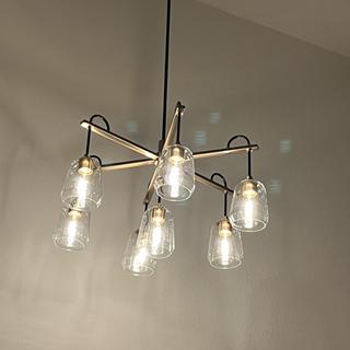 The Arcwell Brass Accented Matte Black Chandelier With Clear Shade complements any location with its minimalist style, both standing out and yet fitting in perfectly.