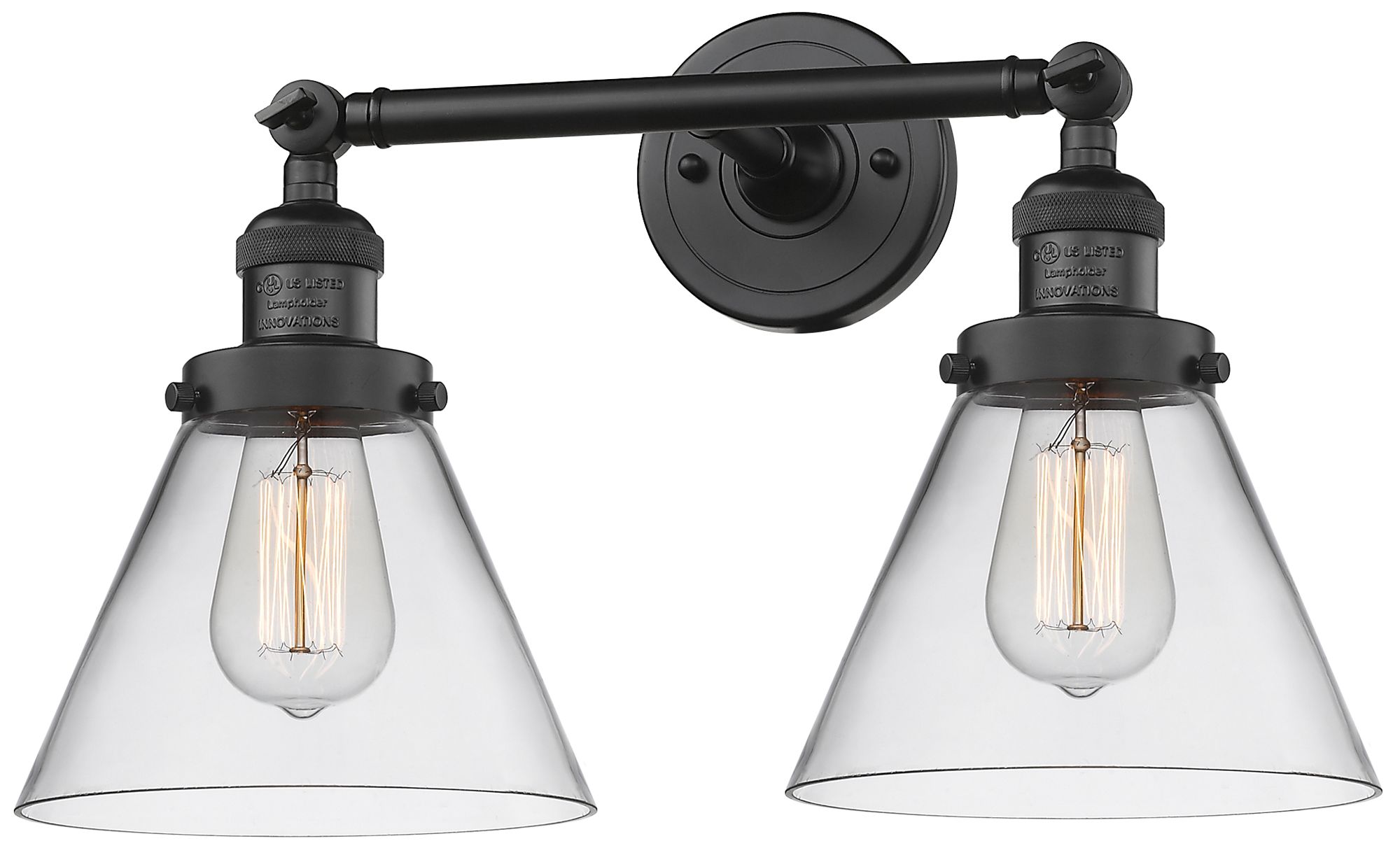 Cone 2 Light 18" LED Bath Light - Matte Black - Clear Shade