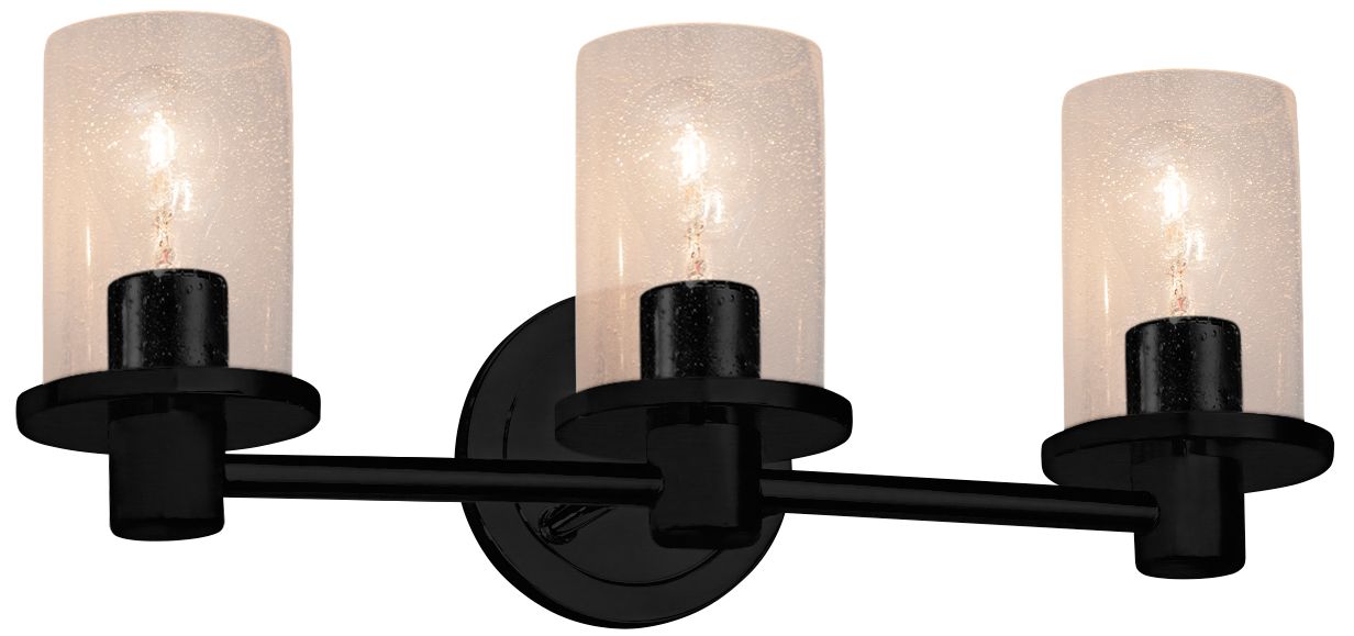 Fusion 8" High 3-Light Matte Black Bath/Vanity with Seeded Shade