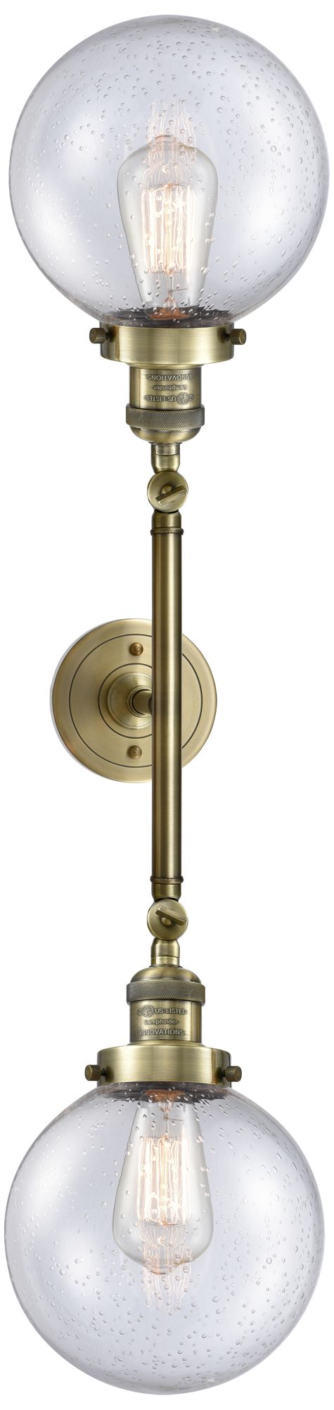 Beacon 8" Wide 2 Light Antique Brass Bath Vanity Light w/ Seedy Shade