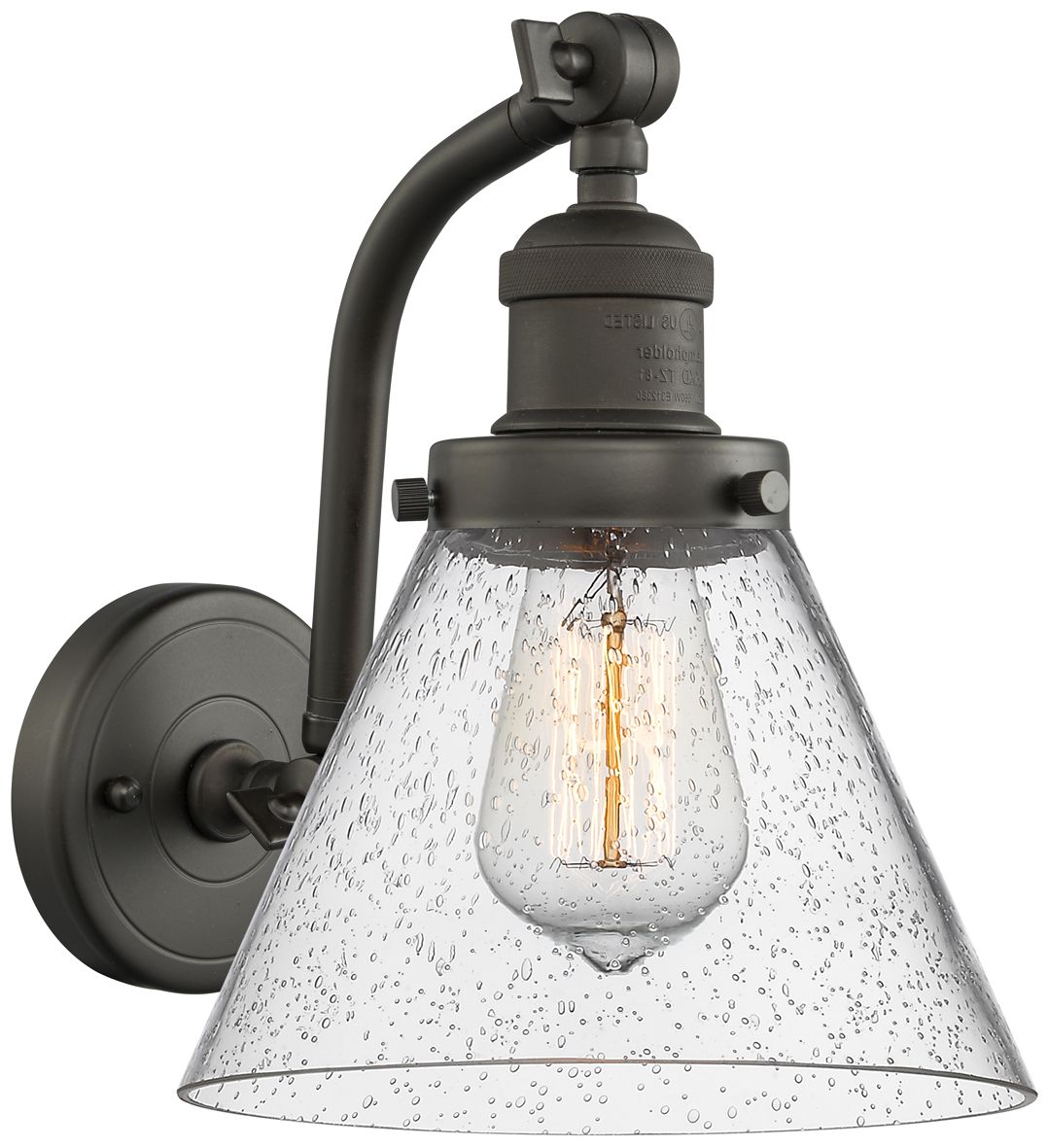 Cone 11 1/2"H Oil-Rubbed Bronze with Seedy Glass LED Sconce