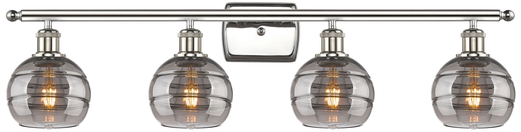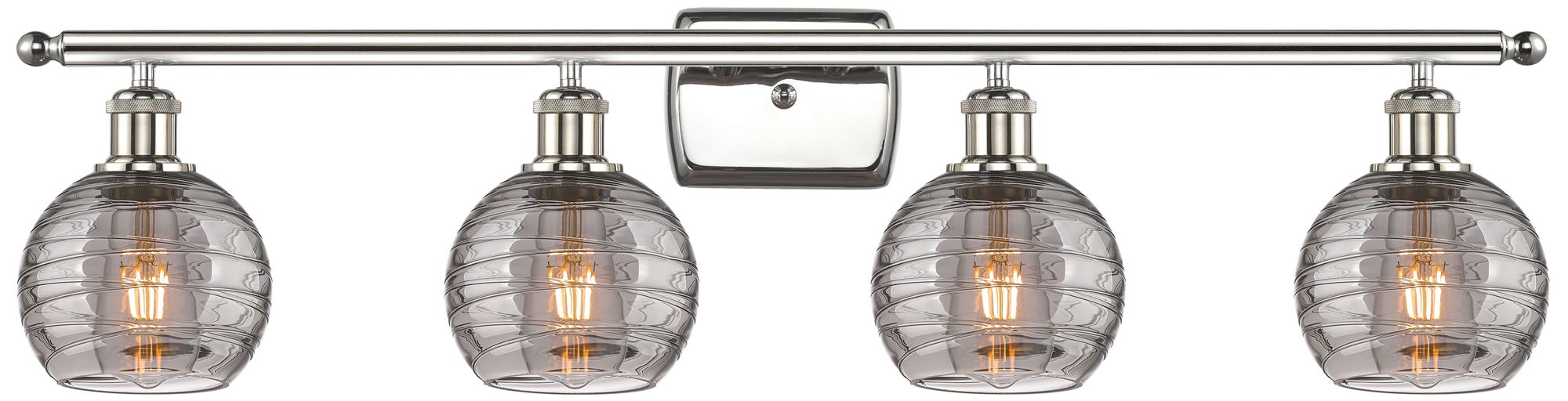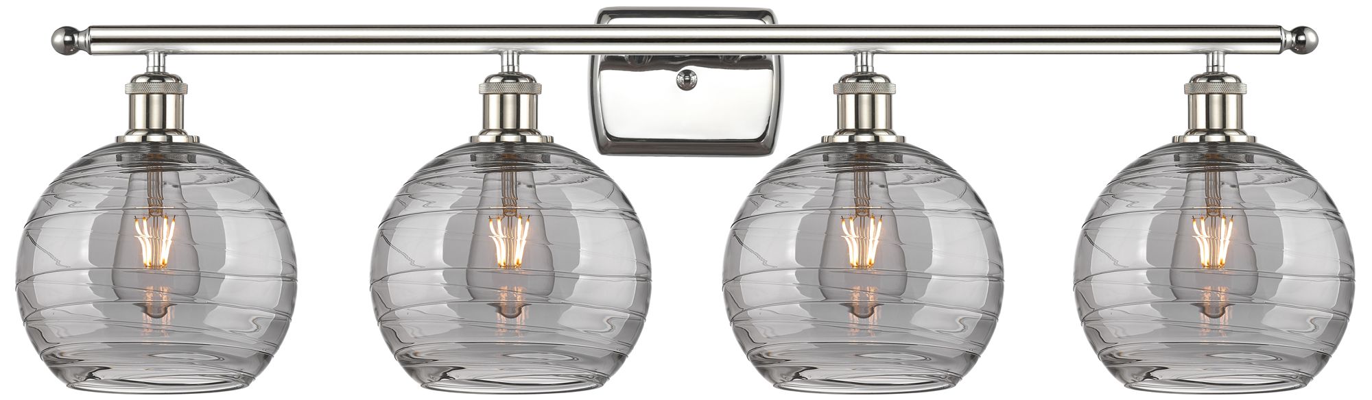 Athens 35.88"W 4-Light Polished Nickel Bath Light w/ Smoke Swirl Shade