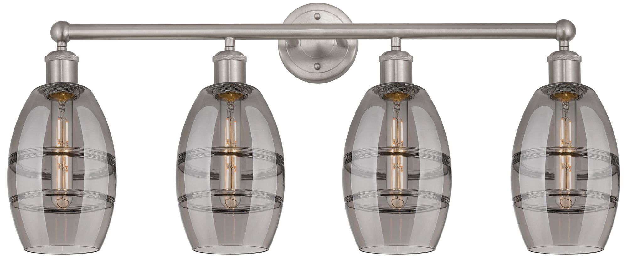 Edison Vaz 32.88"W 4-Light Satin Gold Bath Vanity Light w/ Smoke Shade