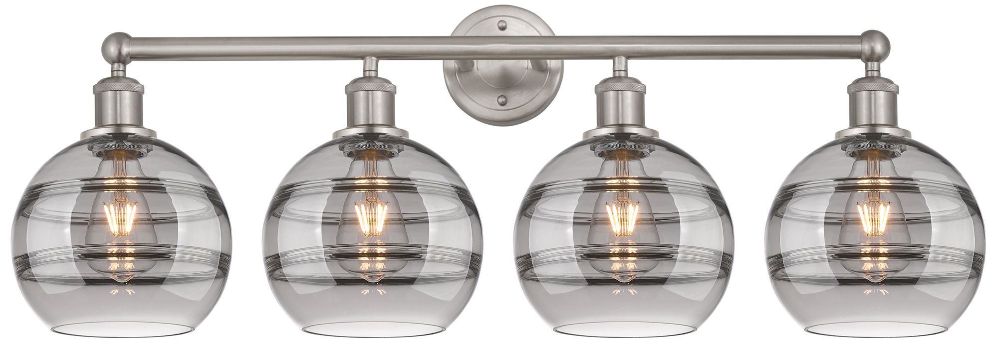 Ballston Rochester 35.88"W 4-Light Satin Nickel Bath Light w/ Smoke Sh