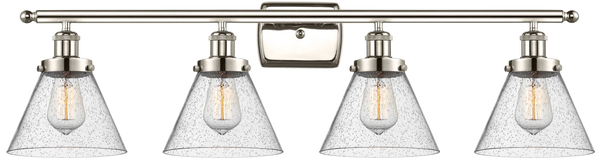 Ballston Urban Cone 38" 4 Light Nickel LED Bath Light w/ Seedy Shade