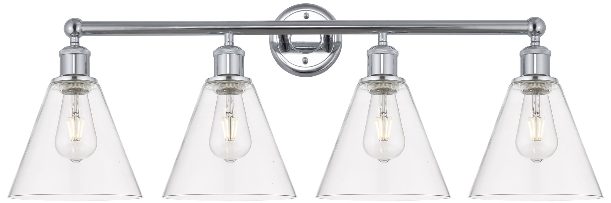 Edison Small Cone 34" 4-Light Brushed Nickel Bath Light w/ Clear Shade