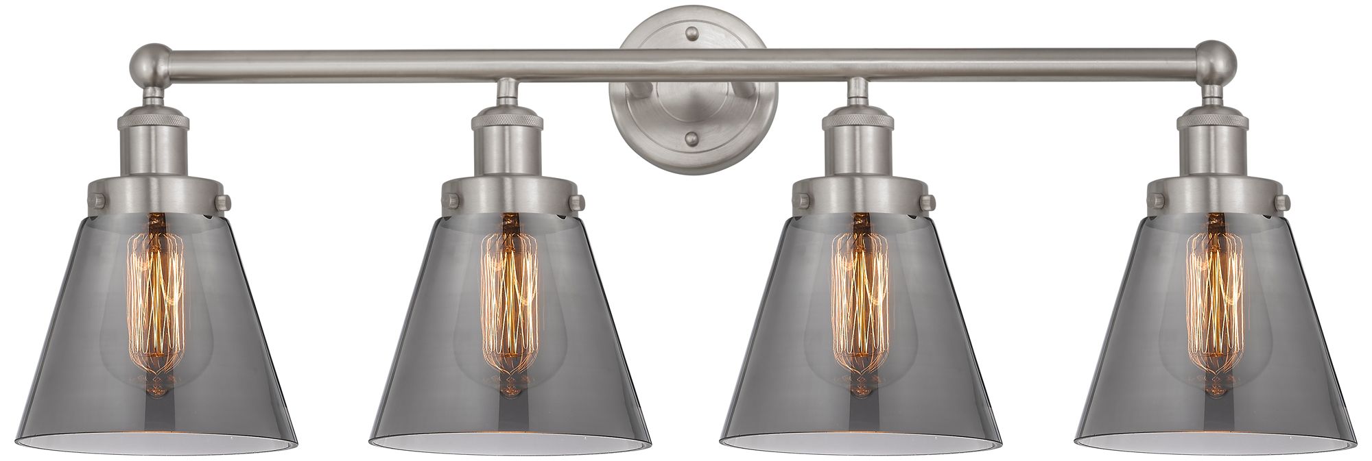 Edison Small Cone 34" 4-Light Brushed Nickel Bath Light w/ Smoke Shade