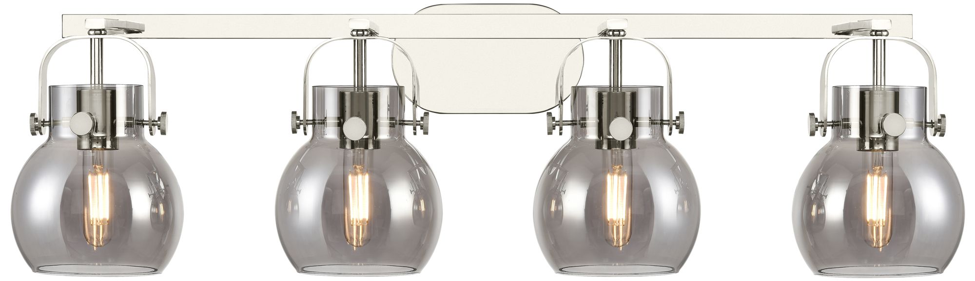 Pilaster II Sphere 36.5"W 4 Light Polished Nickel Bath Light w/ Smoke