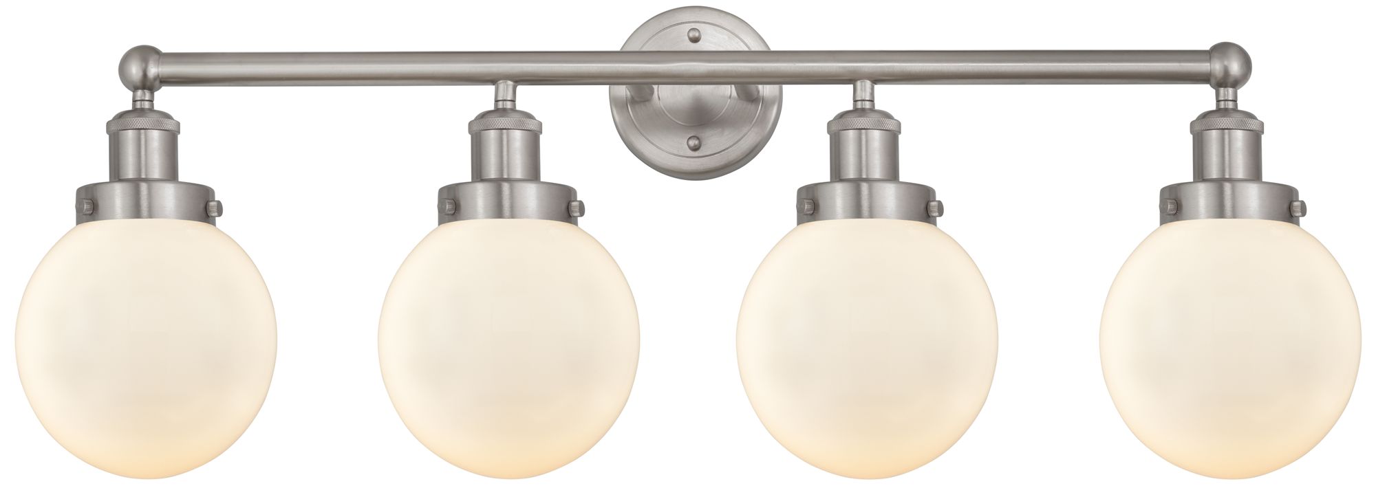 Small Edison Beacon 34" 4-Light Brushed Nickel Bath Light w/ White Sha