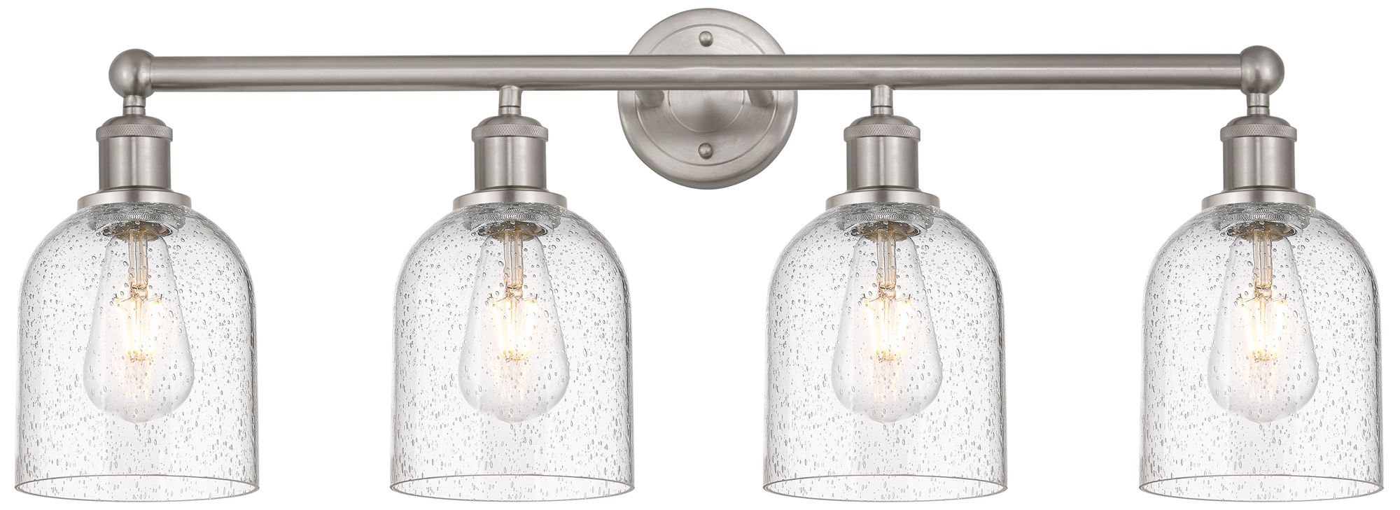 Edison Bella 32.5"W 4-Light Satin Nickel Bath Vanity Light w/ Seedy Sh