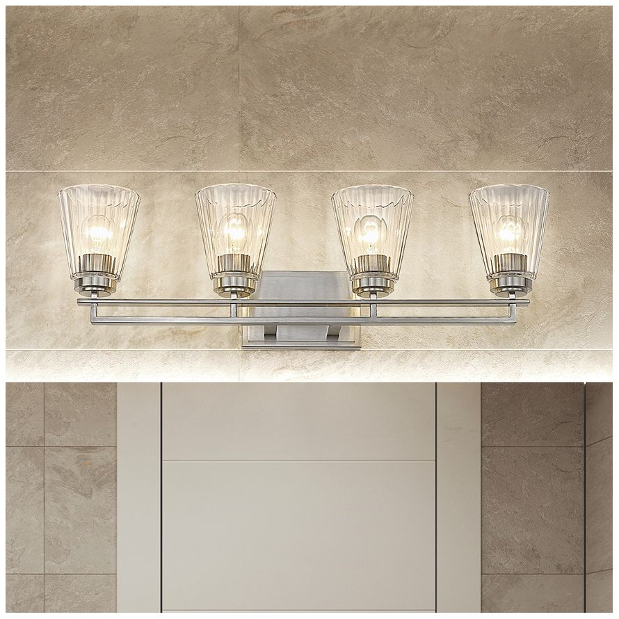 Salina 32" 4-Light Brushed Satin Nickel Bath Light w/ Spiral Fluted Sh