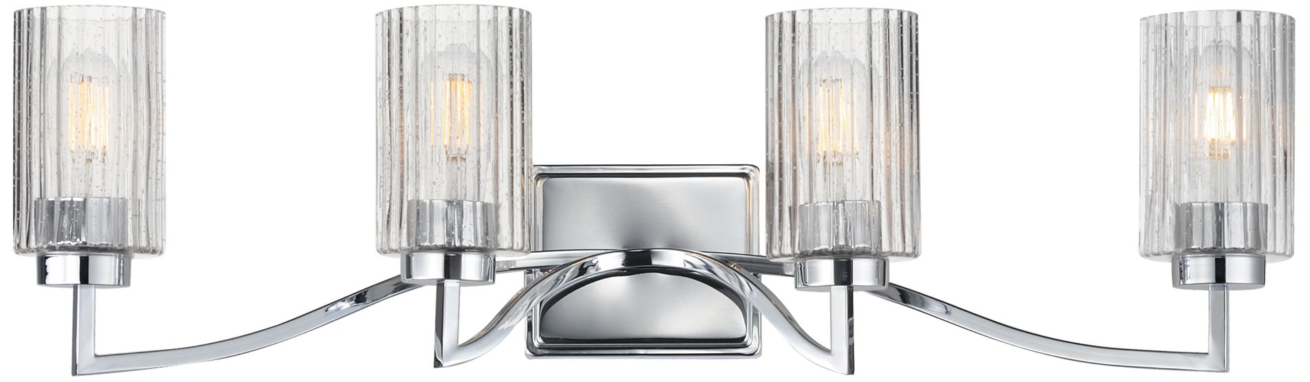 Vienna 29"W 4 Light Polished Chrome Vanity w/ Clear Ribbed Glass Shade