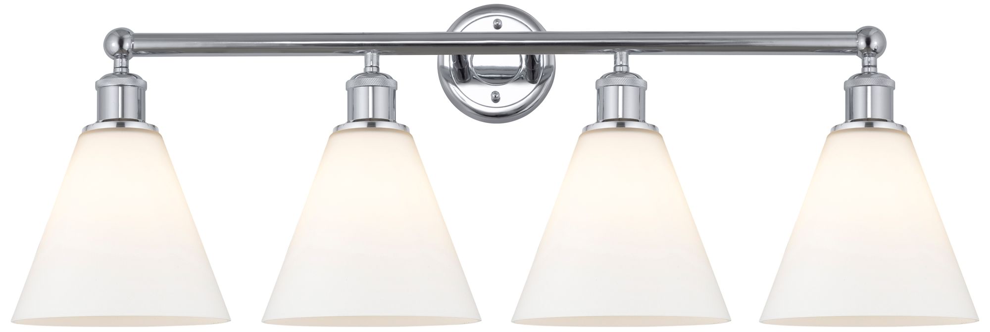 Berkshire 35"W 4 Light Polished Chrome Bath Vanity Light With White Sh