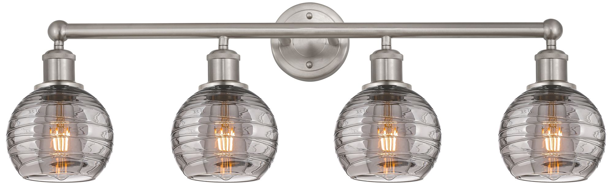 Edison Athens 32.88"W 4-Light Satin Nickel Bath Light w/ Smoke Swirl S