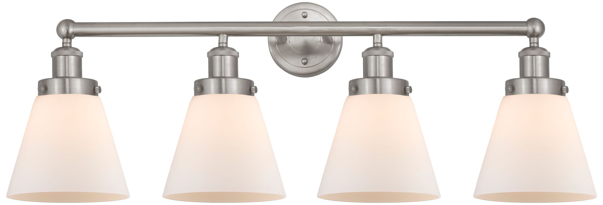 Edison Small Cone 34" 4-Light Brushed Nickel Bath Light w/ White Shade
