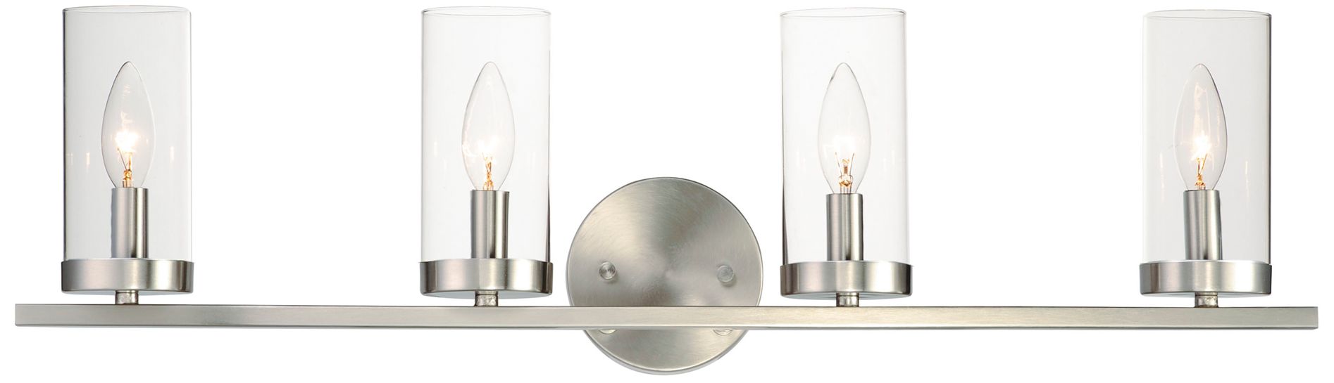 Bolivar 31" Wide 4 Light Satin Nickel Bath Light With Clear Glass Shad