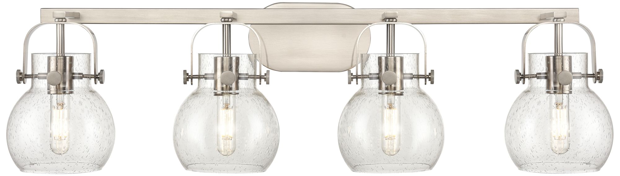 Pilaster II Sphere 36.5"W 4 Light Satin Nickel Bath Light w/ Seedy Sha