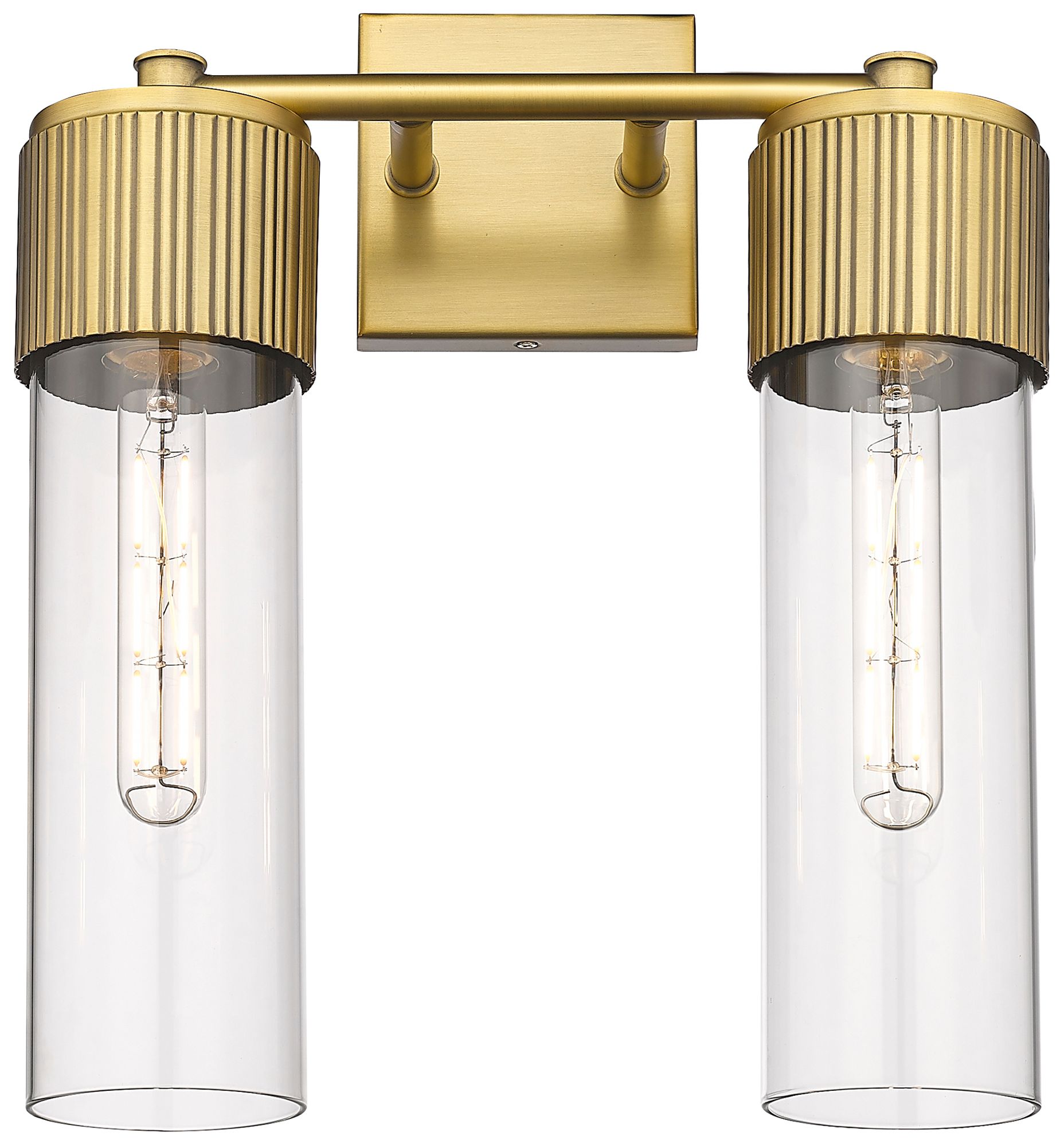 Bolivar 16" High 2 Light Brushed Brass Sconce With Clear Glass Shade